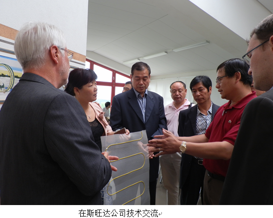 6月14日,考察团来到德国南部温特林根市附近的德国斯旺达公司,公司方热情接待了考察团。斯旺达公司是专业纤维/线缆铺缝设备制造商。生产的铺缝装备主要用于玻纤、碳纤等各种增强纤维的三维立体铺缝,以及线缆、加热丝、软管等的铺缝生产。