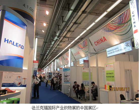 法兰克福国际产业用纺织品及非织造布展(Techtextil展)是目前世界范围内规模最大的产业用纺织品专业展览会。本届Techtextil展于2013年6月11日至13日如期在法兰克福展览中心举行。据主办方统计,此次展会共吸引了50多个国家和地区的1200余家企业参展。参展商们来自产业用纺织品领域的各个生产环节,展出的产品包括纤维、纱线、织物、涂层制品、复合材料、化工助剂、纺纱织造装备、前后处理装备、涂层装备、复合成型装备、切割装备、自动化控制装备、实验室检测装备等。
