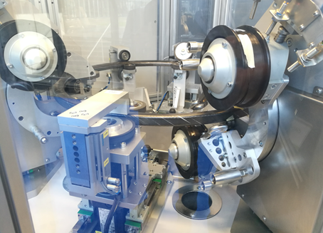 Compact”热塑性预浸带铺层压合设备。该设备适用于宽度在30-300mm、厚度在0.1-0.4mm的热塑性预浸带多角度铺放,并可与该公司短行程压机组合,实现各类连续纤维增强热塑性复合材料制品的同步生产。