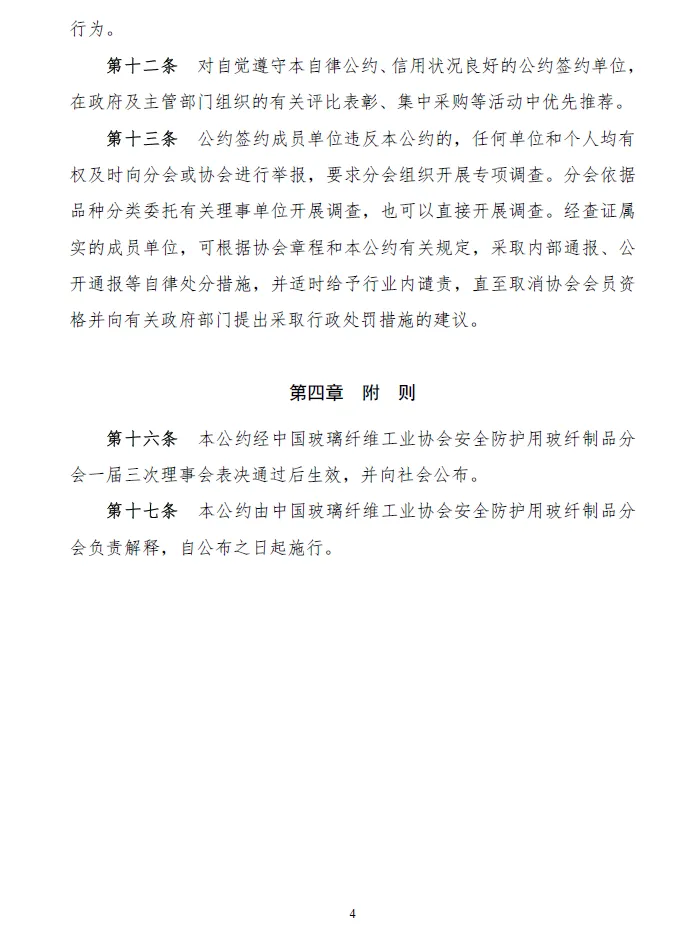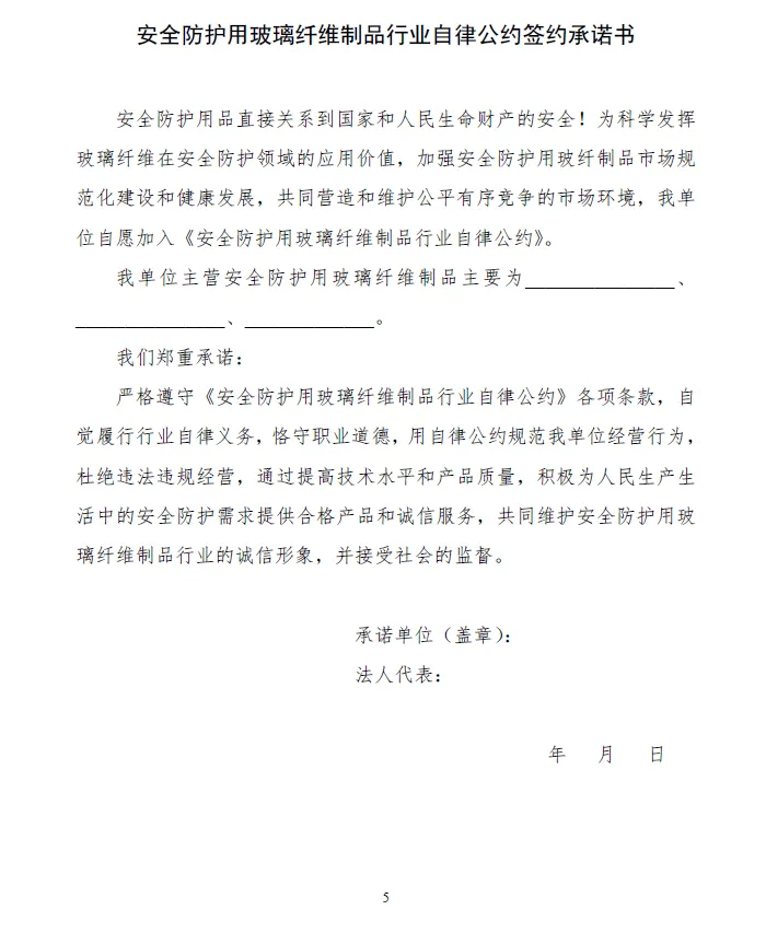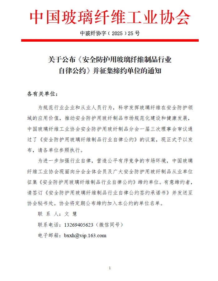 关于公布《安全防护用玻璃纤维制品行业自律公约》并征集缔约单位的通知