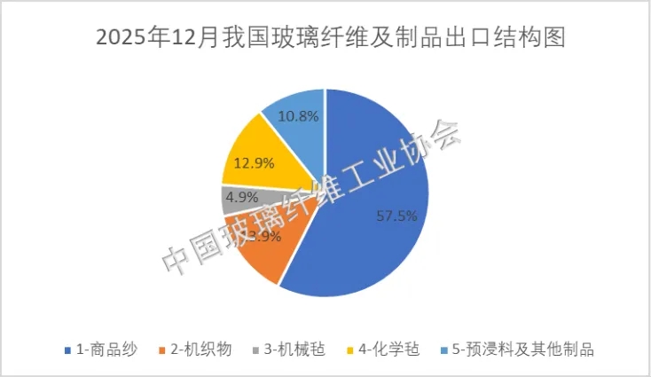 图2 我国玻璃纤维及制品12月出口占比情况