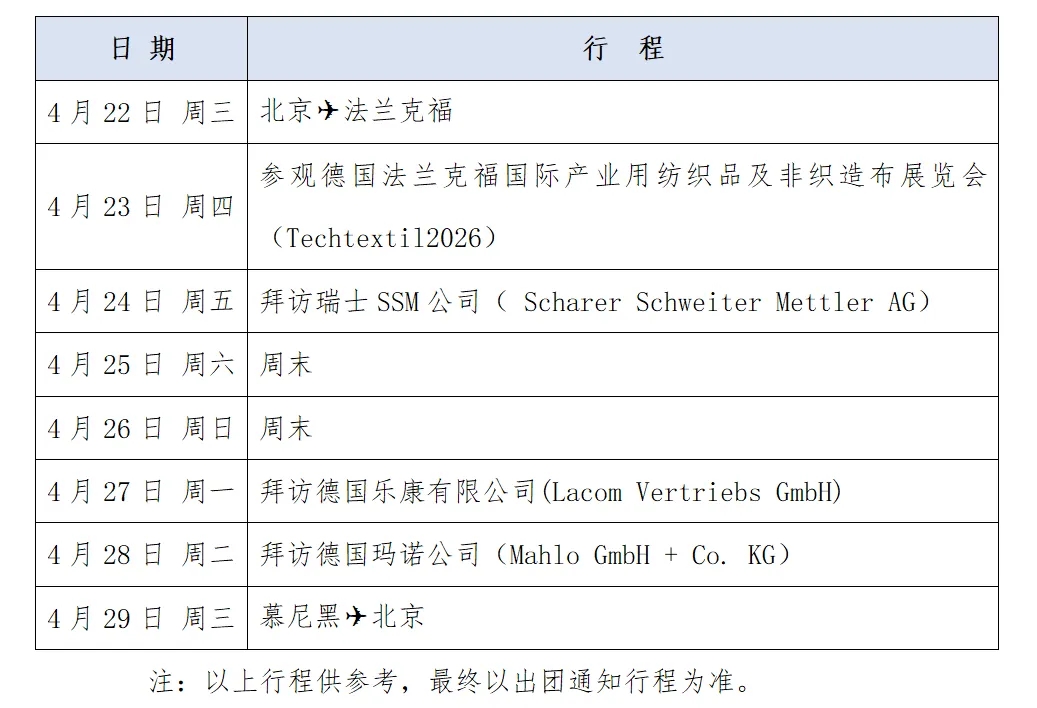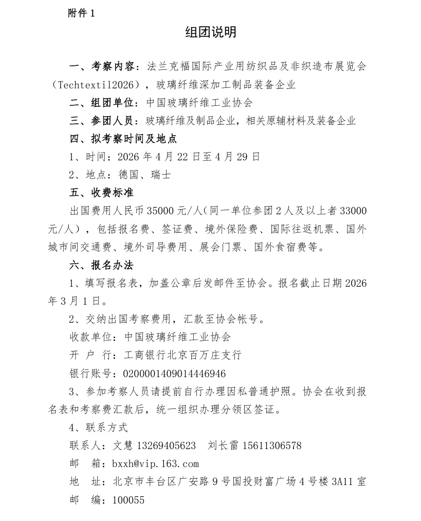 附:关于赴法兰克福国际产业用纺织品及非织造布展览会参观考察的通知